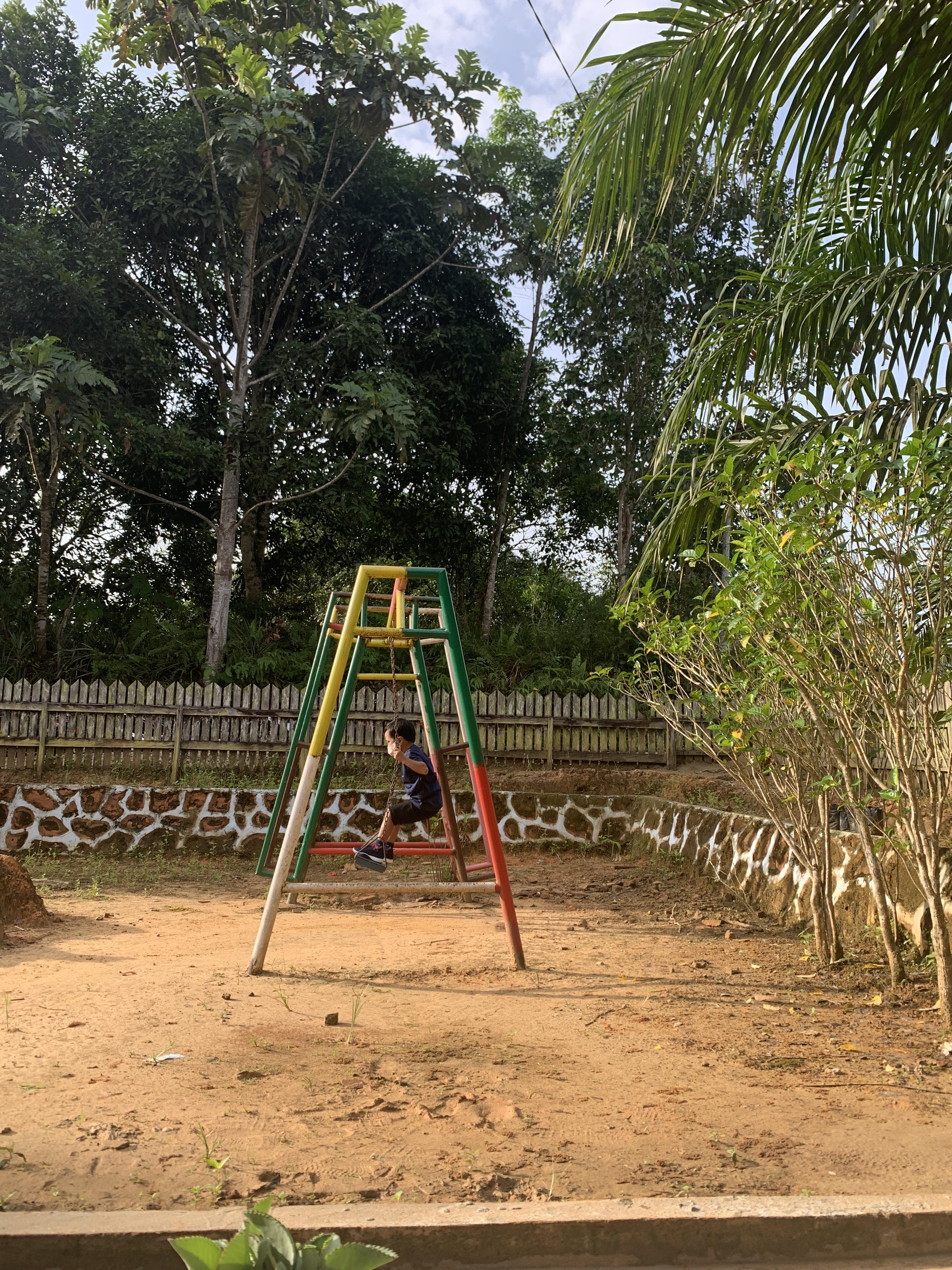 유치원 놀이터 풍경이예요^^ 그네 한 줄만 있고 그마저도 도둑맞을까봐 휴식시간에만 선생님이 걸어주셔서 제한시간에 탈 수 있는 귀한 그네예요. 그래도 이렇게 유치원을 다니는 아이들은 동네에서 잘 사는 아이들이고 이 동네에서 태어나는 아이들 절반이상은 기본교육도 받지 못하고 어릴때부터 부모따라 팜채칩, 석탄채집, 농삿일에 도움을 주고 있는 형편이예요. 유치원에 다닐 정도 수준이라 해도 아이들 옷 상태나 학용품을 보면 열악하기 그지 없습니다.