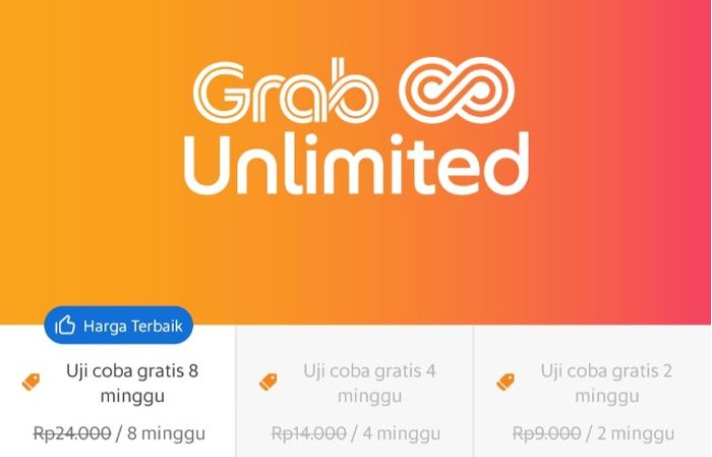 난 종종 자카르타 출장 또는 여행을 가거나, 발리를 가게 될 때 정말 유용한 팁이 있어 공유한다. 이 서비스를 알고 이용한지는 한 6개월정도 넘었나?! 해외에 거주하는 한국인들 특히, 인도네시아에 거주하는 대부분이 Grab 또는 Gojek이라는 플랫폼 서비스를 알고 있고, 이용하지만, Grab Unlimited 사용하는 사람은 아직 못 본 거 같다. 물론, 이 서비스가 상술로 생각할 수도 있겠지만... 몇개월간 이용해 본 결과 자카르타나 발리, 수라바야 등 대도시에 거주하는 한국분들이나 출장이나 여행갈 때 이용할 차량, 오토바이, 음식배달 등을 이용하게 된다면 꼭 사용해보길 바란다. 본론으로 들어가서... 난 보통 일주일내 여행 또는 출장이기에 가장 저렴한 2주 Rp9,000를 이용하게 된다.