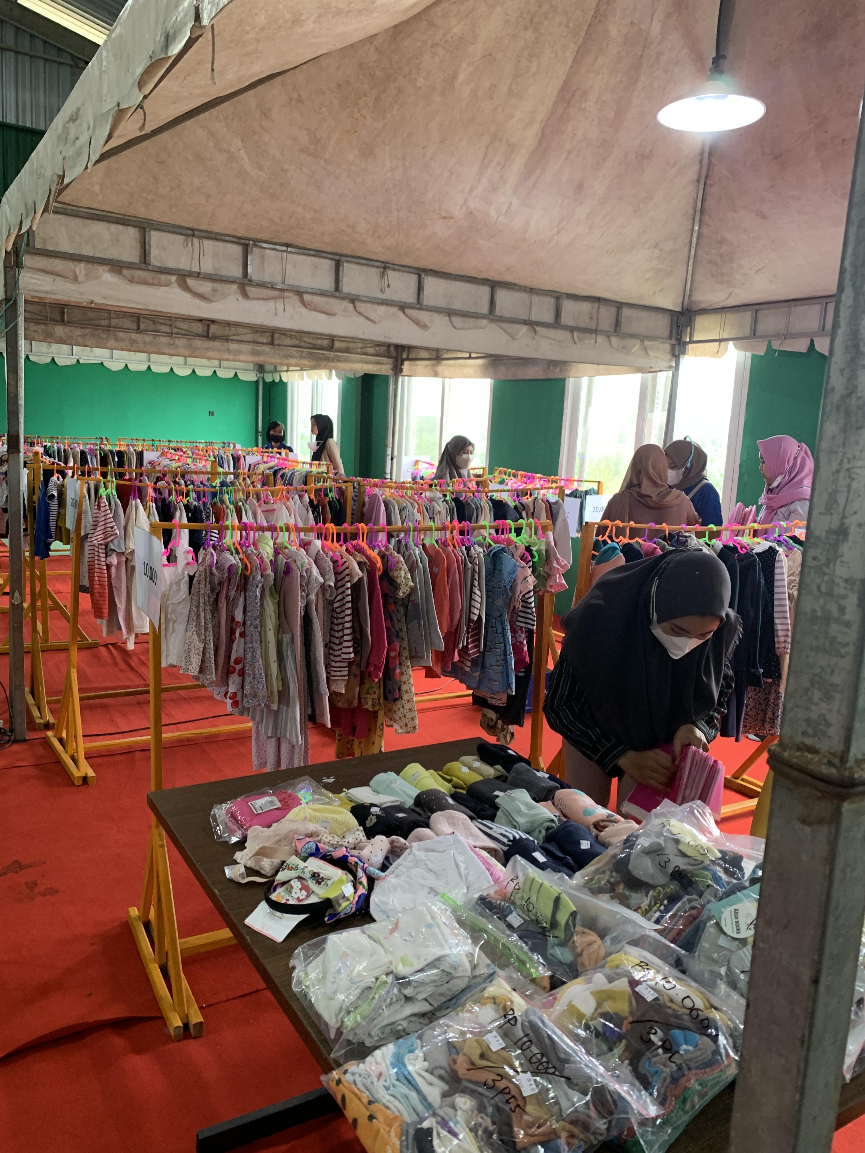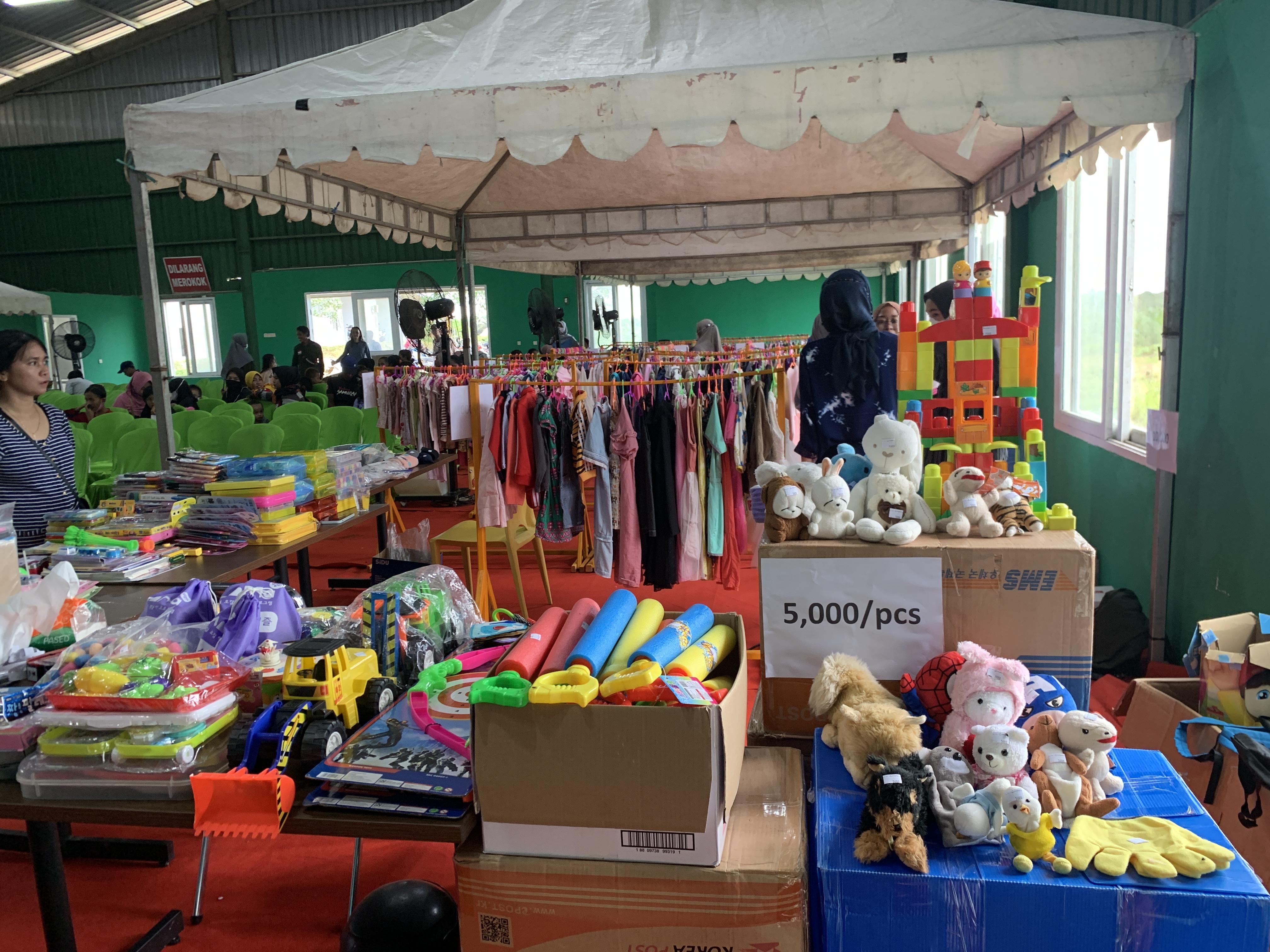 문구, 완구, 의류 모두 기증물품으로 채운 것들입니다. 여기에서는 행거를 구하기 힘들어 저걸 다 나무로 짰습니다^^; 이가 없으면 잇몸으로, 없다고 좌절하지 않고 이렇게 만들면서까지 도와준 인도네시아 직원에게 박수를!!!! 너무 훌륭하게 만들어주어 기증받은 옷들이 훨씬 빛이나 보였어요^^