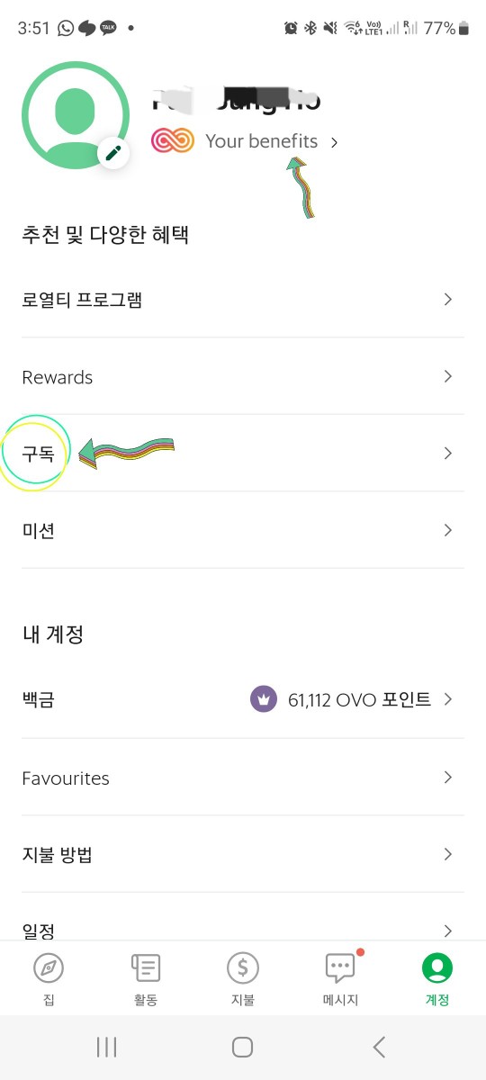 1.계정에서 "Your benefits" 또는 구독 선택