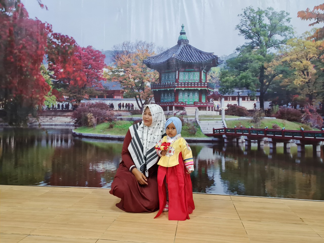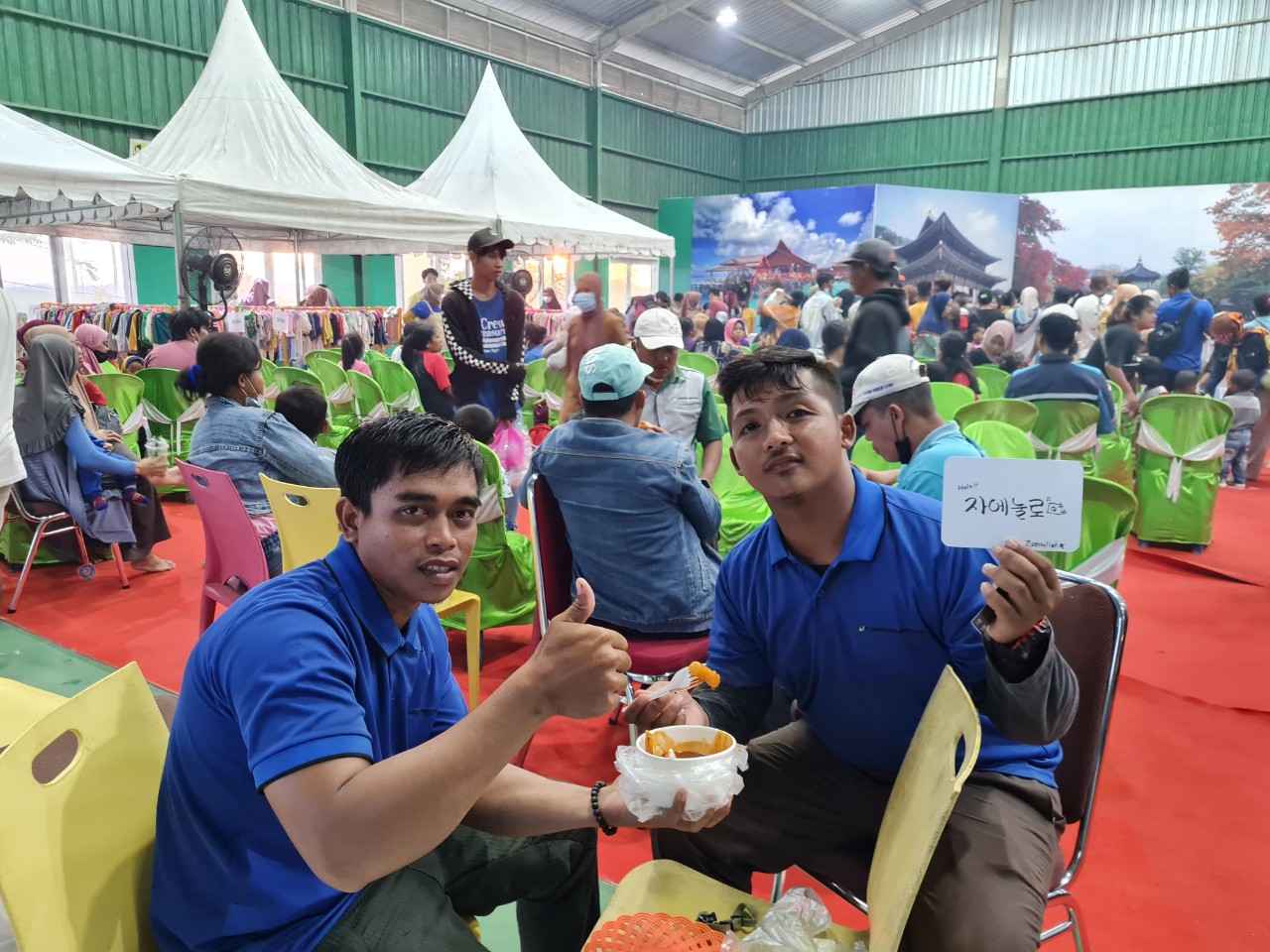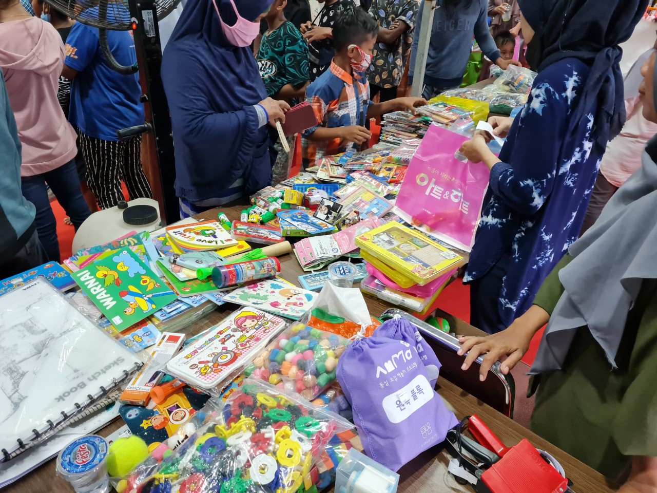한복 입어보기 체험코너도 엄마들에게 인기폭발이었습니다. 입은 모습을 보니 미리 한복 입히는 것을 연습시켰는데도 사이즈도 맞지 않게 입히고 거꾸로 입히고...엉터리로 입고 있더라고요. 하지만 인도네시아인들은 인형같다고 감탄감탄하고요 ㅎㅎ 나중에 왜 저렇게 입혔냐니까 사람들이 맞는 사이즈 기다리기 힘드니까 팔 들어가면 알아서 아이들에게 입히는 바람에 그렇다네요 흐미ㅋ 직원들도 통제하느라 너무 고생 많았을 것 같아요..