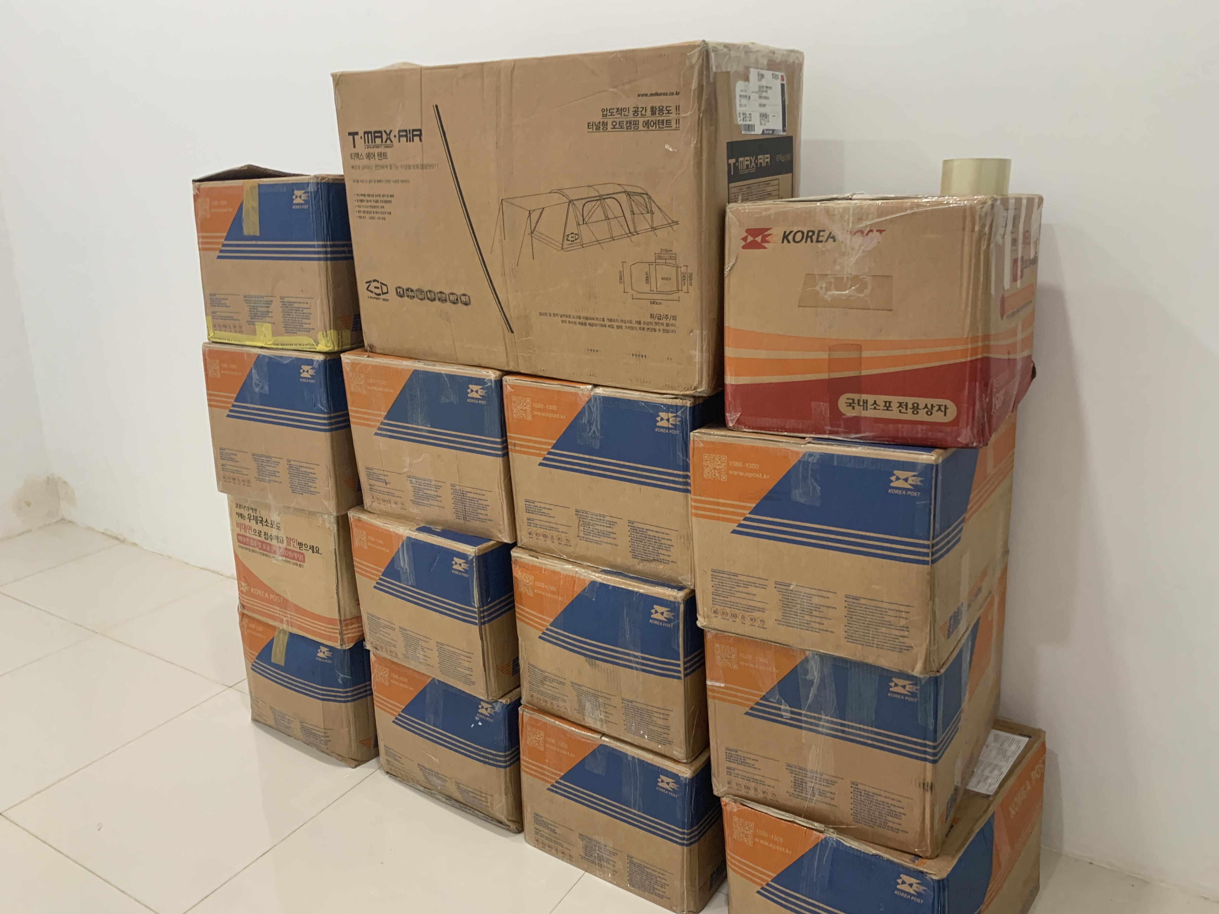 한국에서 비행기타고 배타고 고생하며 도착한 귀한 물품들.