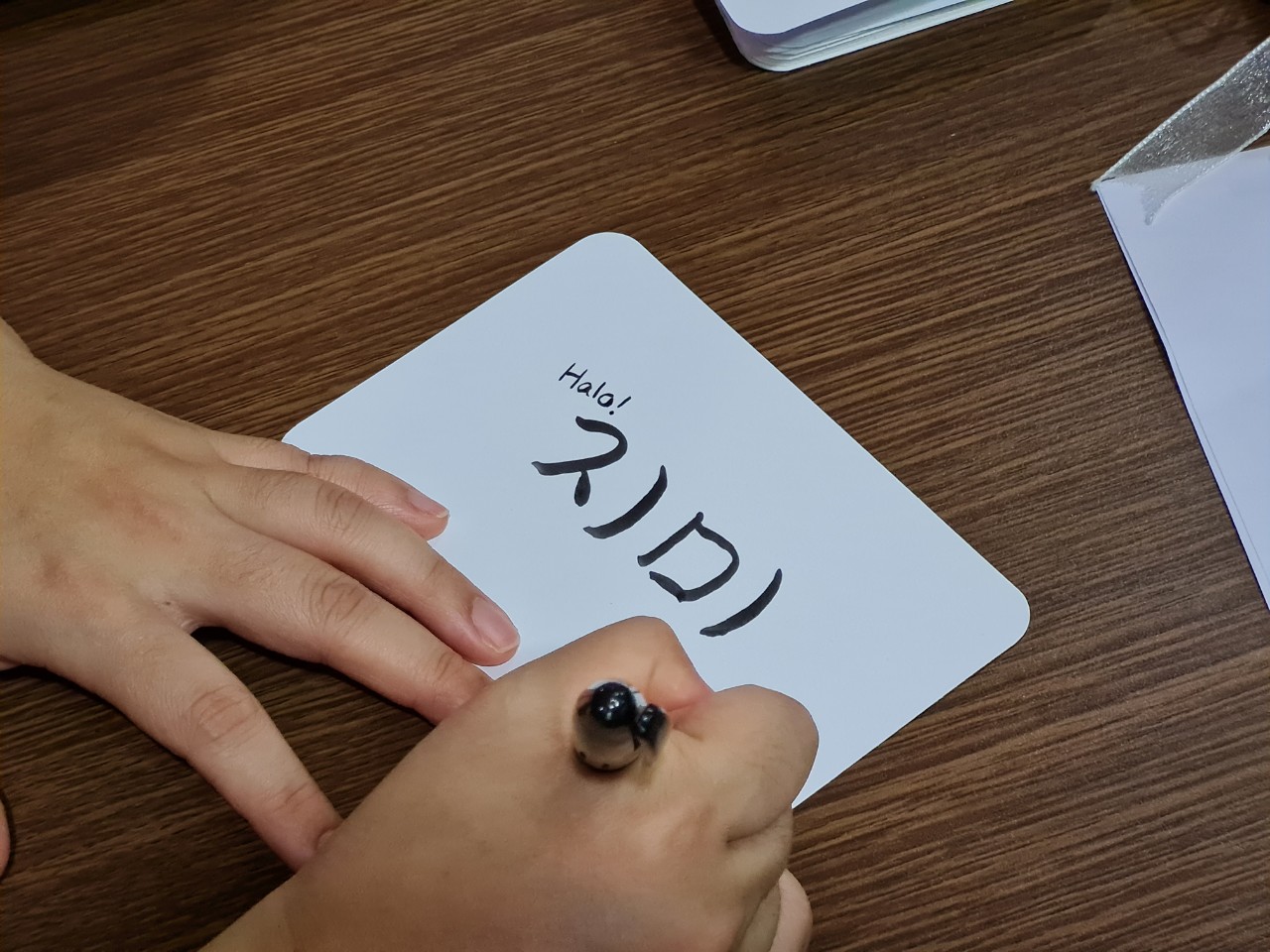 저도 옆에서 카드 써 주기 했어요. 한국인이 앉아있으니 부끄러워서 구경만 할 뿐 선뜻 오지 않길래 사탕을 흔들며 호객행위(?)를 했답니다 ㅋㅋㅋ 무료~~+사탕도 무료~~!!