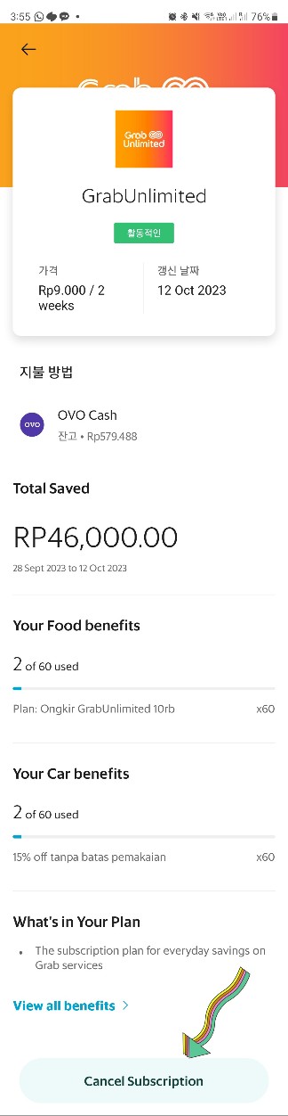 2. Cacel Subscription 클릭하면 해지 (위에는 내가 받은 혜택(사용한 쿠폰 내역) 확인가능)