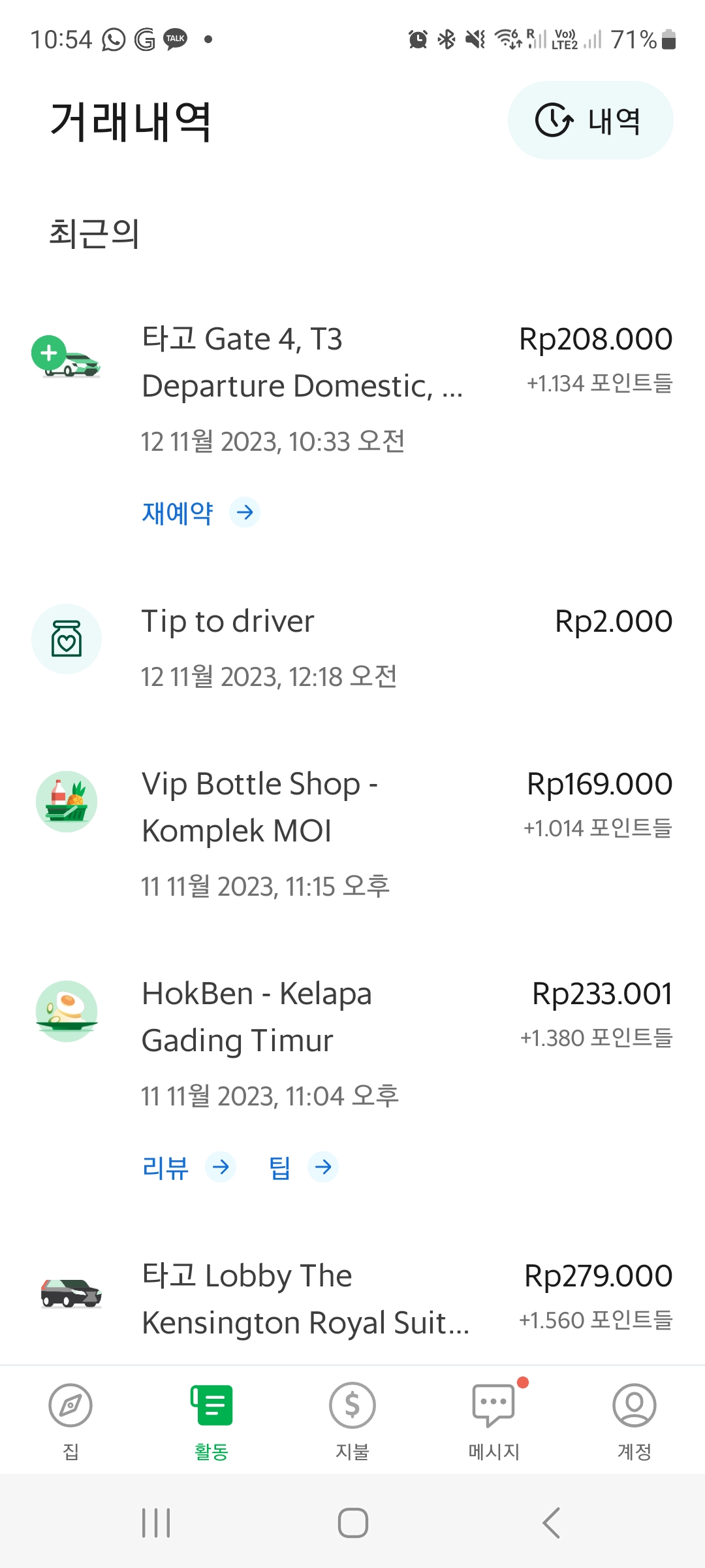 2주간 Rp9,000(원화 ₩750원정도)로 상기 쿠폰을 받아 자동 적용 또는 선택해서 할인 받을수 있다. 자주 사용하는 쿠폰은 이동을 위한 오토바이 또는 차량 쿠폰 또는 음식 배달 할인 쿠폰을 주로 사용하게 되드라~~