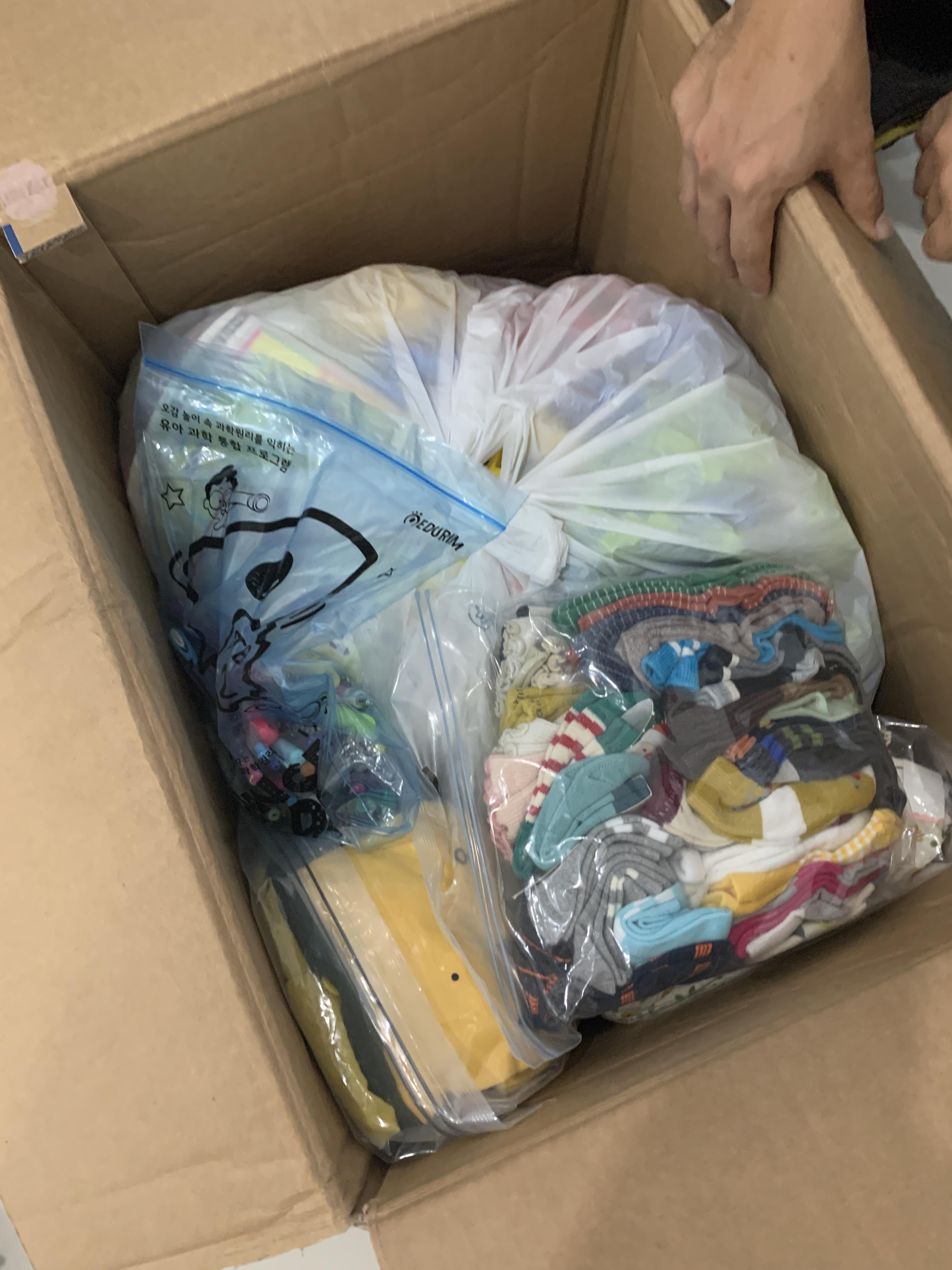 물품들도 정말정말 다양했어요! 의류,신발,잡화는 물론 예체능활동에 필요한 도구 및 교구, 심지어 선생님들 사무실에서 쓰실 수도 있겠다면서 사무용서랍까지 깨알같이 보내셨더라고요!
