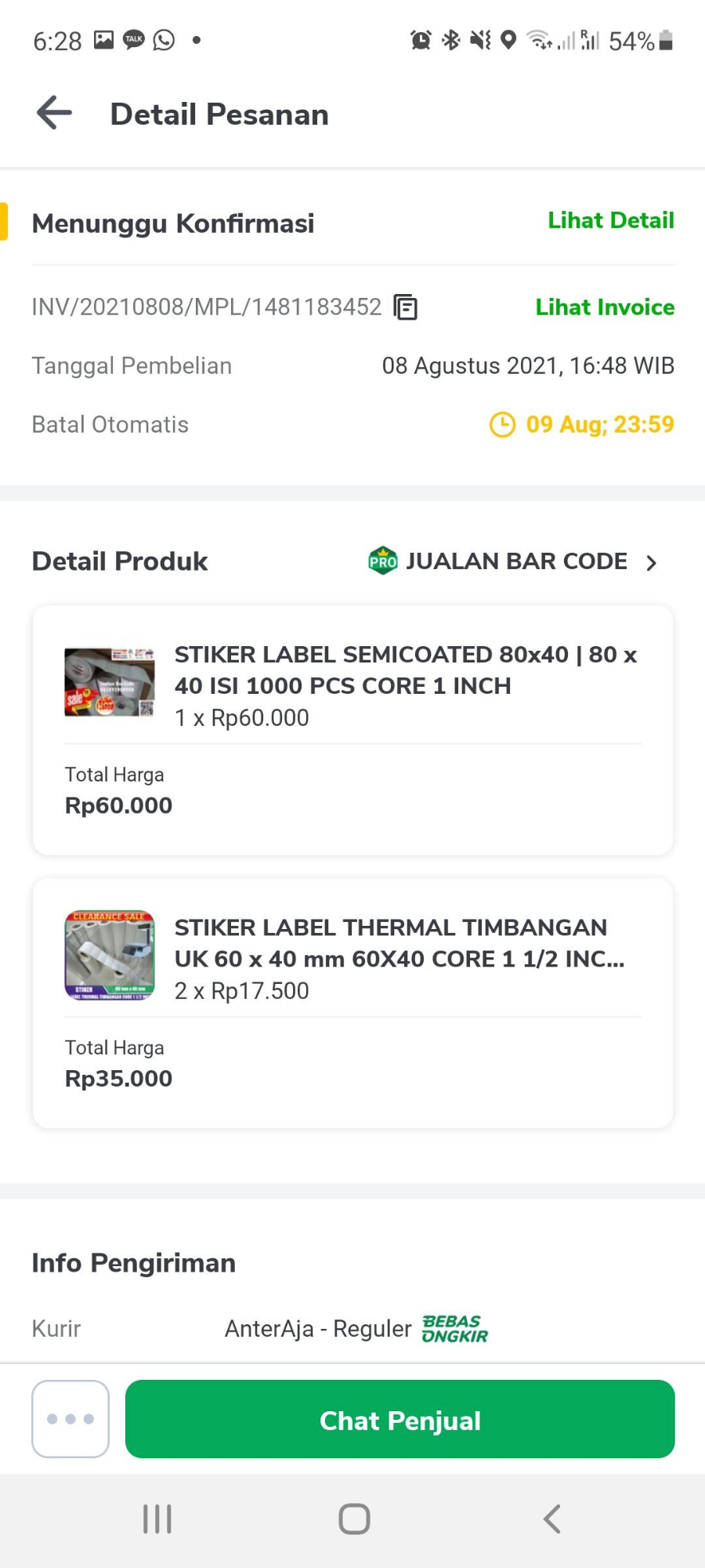 난 그게 싫어서 인도네시아 Tokopedia를 통해 "감열 라벨지(Kertas Label Thermal)"를 구매하기로 마음 먹었다.