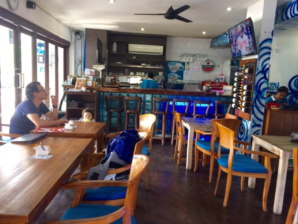 오토바이를 타고 정처없이 사누르 해안지대를 돌다가 배고파 들어간 블루카페입니다.