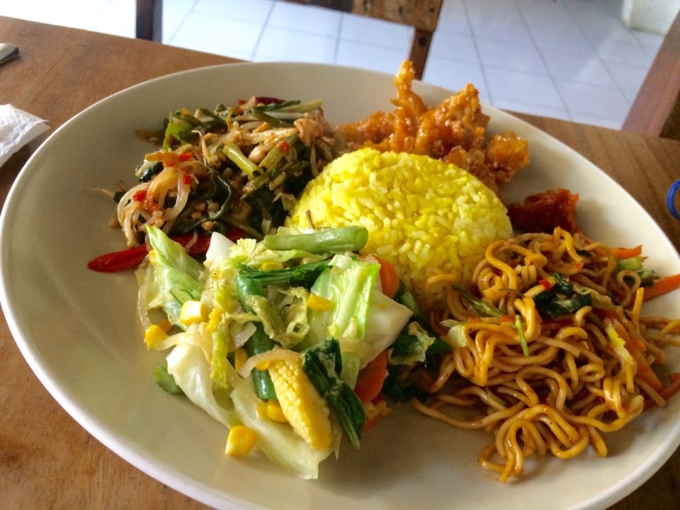 나시 짬뿌르는 고기1종류와 야채2종류,미고랭1종류 넣어 4만 룹으로 지금껏 먹은 나시짬뿌르에 비해 비싼 편이었지만, 반찬 세팅이 청결하고 음식맛도 외국인들이 거부감 없이 먹을 수 있도록 조정이 된 것 같았어요. 현지인을 위한 나시 짬뿌르가 아니니 가격도 그러한 듯 했습니다^^
