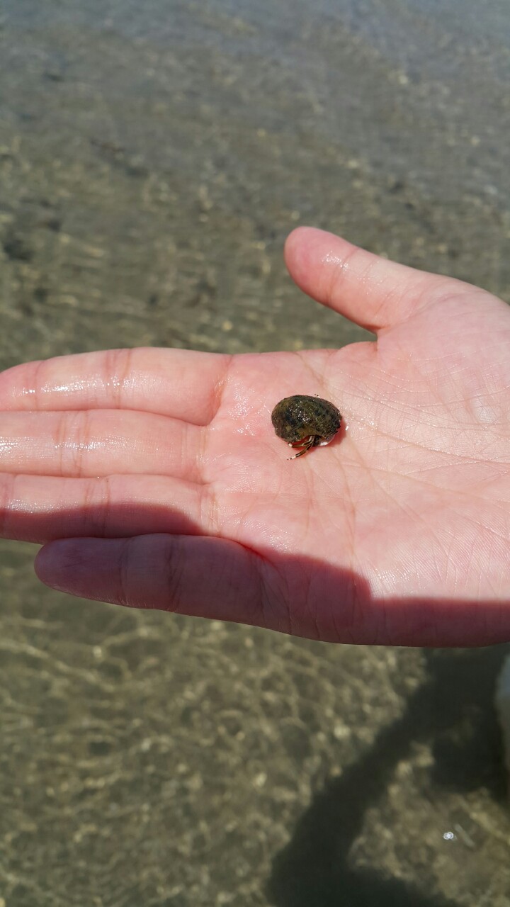 돌 담 사이를 보면 게들도 엄청 많고요, 이렇게 귀여운 조개게도 발견할 수 있습니다.