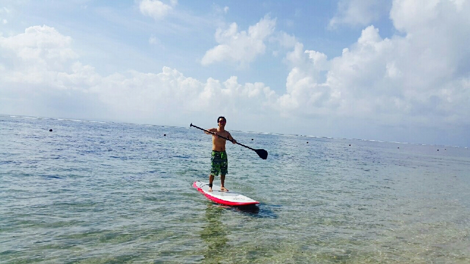 자리를 잡은 후 윤식당에서 나왔던 패들보트를 빌려 타보기로 하였고요, 비치의자 두개와 패들보트 합하여 30만 룹에 빌렸습니다. 가격 담합이 되어있어 30만룹이상 깎아 주질 않더라고요 ㅠ