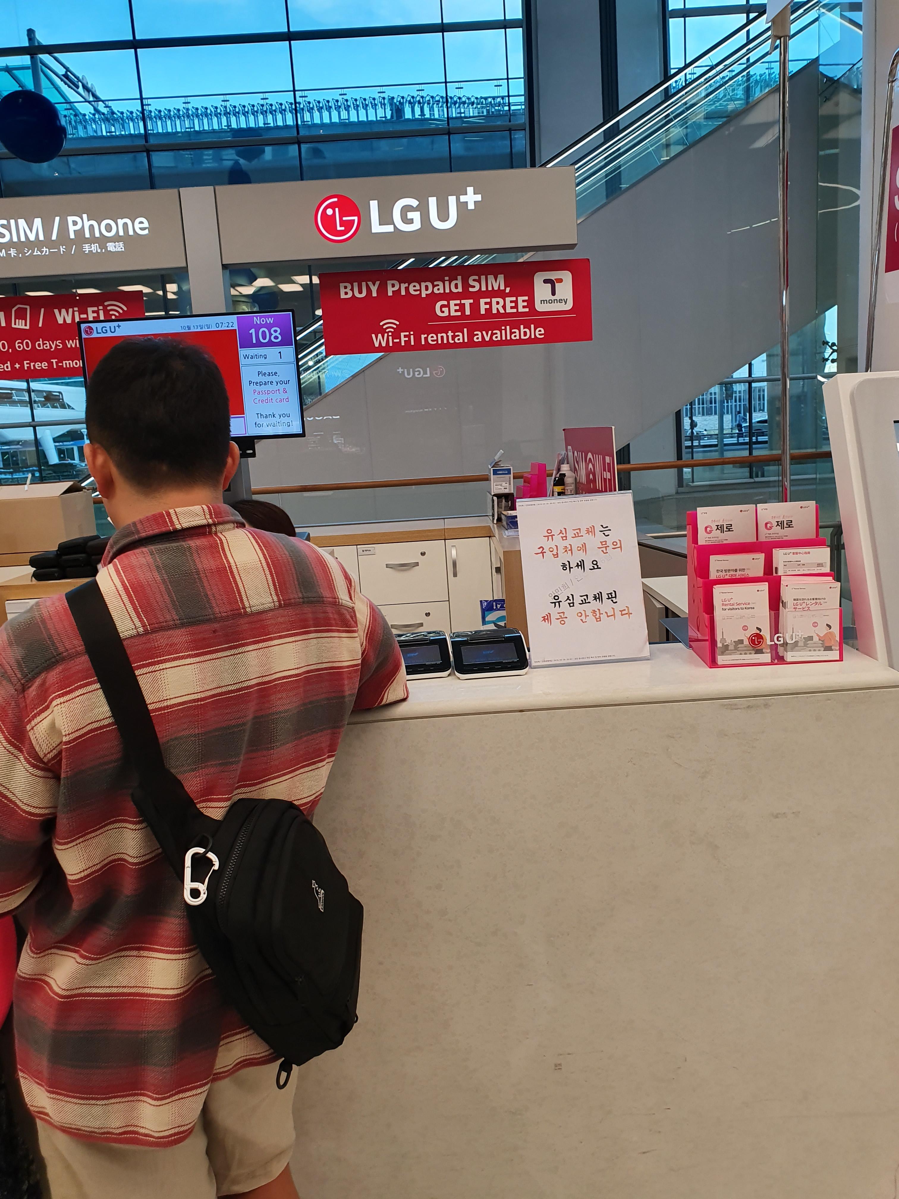결론부터 이야기하자면! 인천공항에서 한국핸드폰 유심칩 구매하여 개통가능하나 "직영점 업무가 종료된 시간"에만 가능하다!!