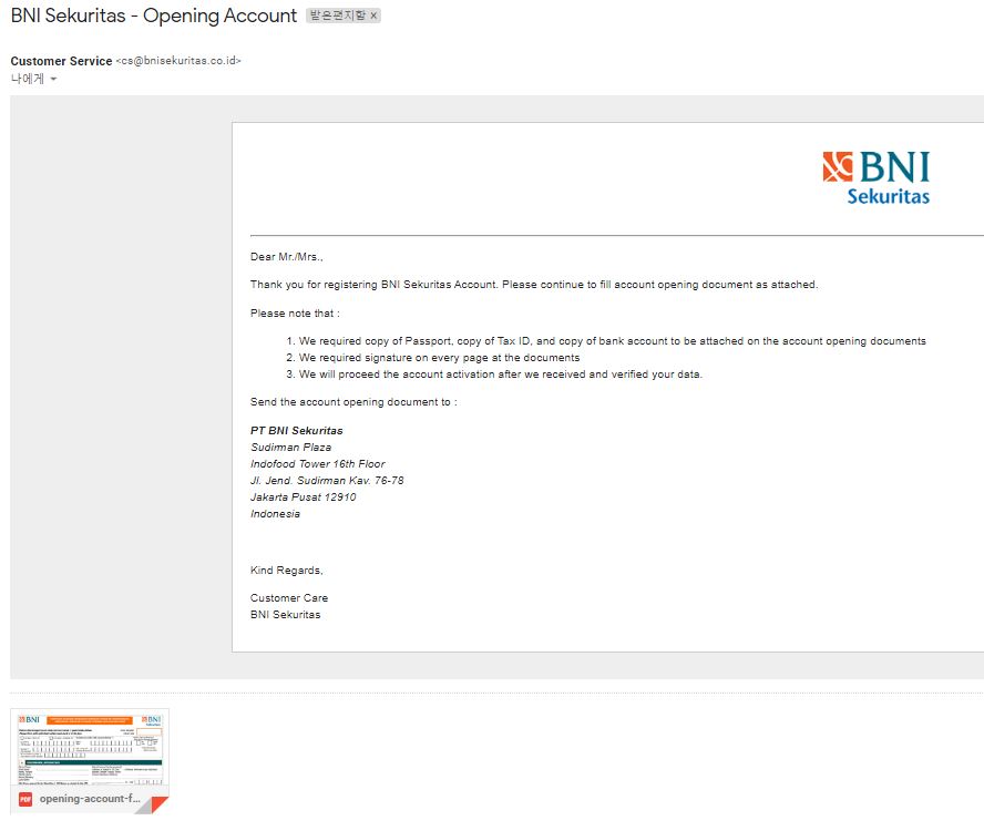 그리고, 오늘 드디어 인도네시아 주식계좌 개설이 끝났다. 이제 투자만 하면 된다!!