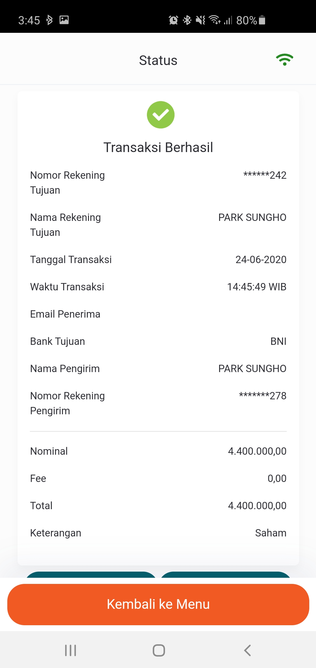 2> RDN(Rekening Dana Nasabah) : 고객계좌번호를 확인!(상세내용은 Account Info에서도 확인 가능)