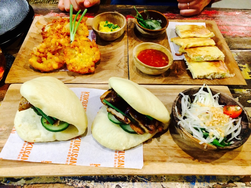 맨 앞에 샌드위치처럼 생긴 빵이 쿠쿠산 대표메뉴인 스팀번인데요, 찐만두 비슷합니다.