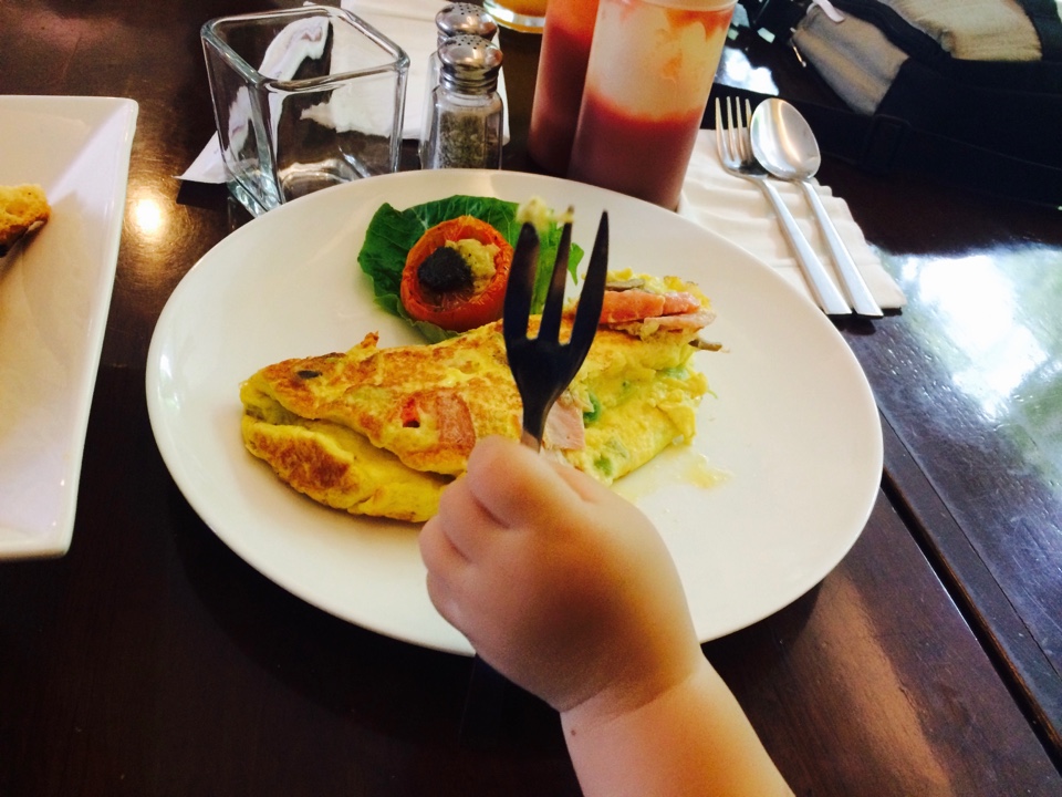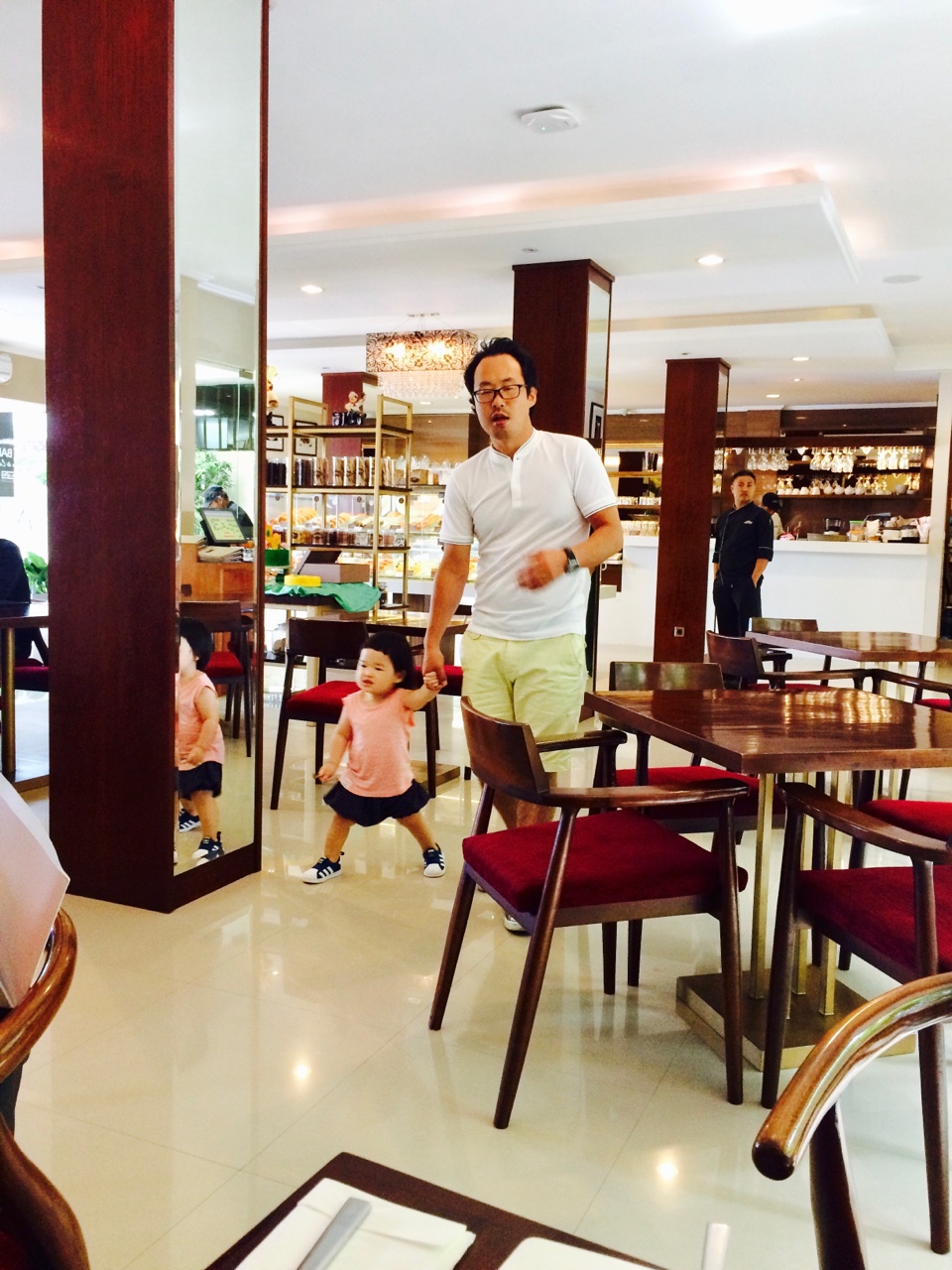 마지막 아침은 우리의 단골레스토랑 가디즈 베이커리에서 먹었습니다. 항상 그렇듯 뀰뀰이 대환영^^ (인도네시아는 대체적으로 아이에게 무척 관대합니다. 아이데리고 식당 가는 것이 참 편해요. 외국인이건 현지인이건 아이들의 예기치 못한 소란에도 크게 개의치 않고요.)