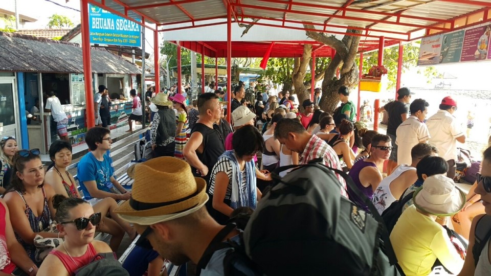 저희가 예약한 여행사 체크인 박스로 이동해 이름 확인하고 배편 정보가 있는 팔찌를 부착한 후 탈 배가 정박하는 곳에 잠시 대기했습니다. 음..렘봉안투어 저희도 처음이긴 한데 한국분들은 많이 안하시는 지 한국 관광객분들은 하나도 보질 못했어요.
