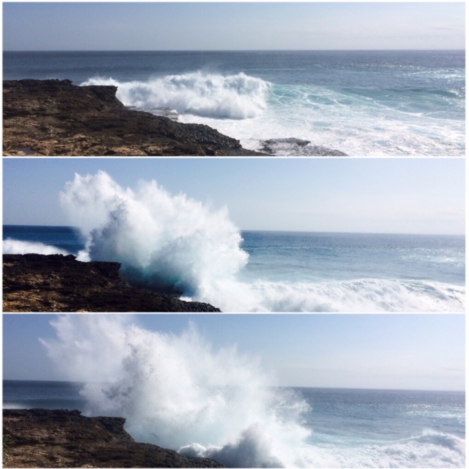 파도의 높이도 우와 정말 엄청나게 높고요, 절벽에 부딪치며 솟구치는 파도의 모습과 그 소리, 그 속에 만들어지는 거대한 무지개가 정말 환호를 일으킬 만한 장관을 연출합니다.