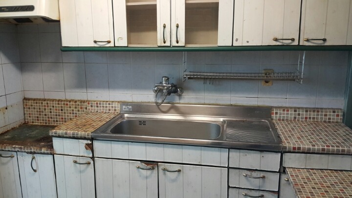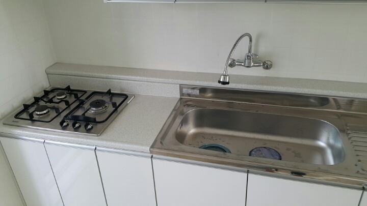 1.싱크대 교체: 가장 기본형으로 교체하고 원래 계획은 가스렌지 놓는 곳을 이전과 동일하고 낮게 계획했다가 아내의 아이디어로 매립형 중고 가스렌지 59,000원에 구매해서 깔끔하게 매립했어요^^ㅎㅎ