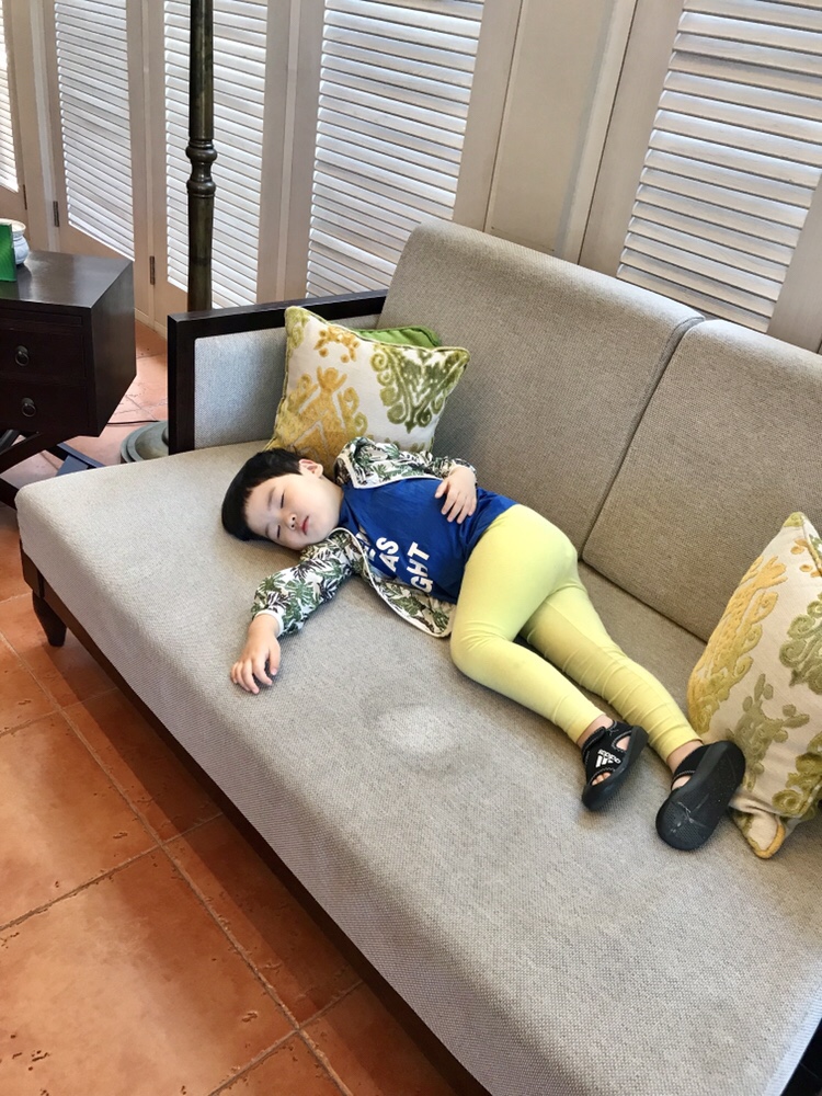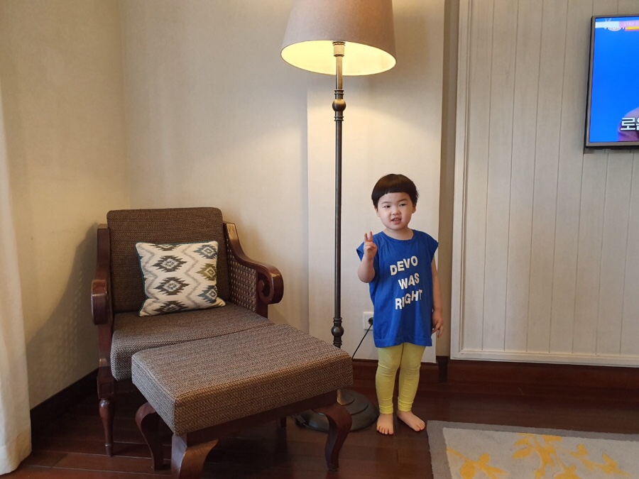 아들이 깨서 방을 빙글빙글 뛰어다니는 모습을 보니 더 방 크기의 쾌적함이 느껴지는 듯 했다. 화장대가 따로 있어 화장실에 목용용품과 화장품을 뒤섞어 놓고 사용하지 않아도 되고 조명 또한 조절할 수 있는 감도의 커버리지가 커 아이 동반한 가족에게 좋을 것 같다.