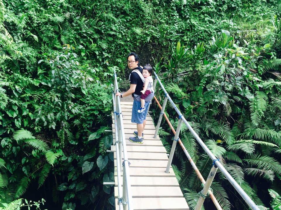 트래킹코스로 접어들면서 남편의 고행이 시작됩니다 ㅋ 길도 가파르고 좁은데다 축축한 흙길이 섞여 갈까말까 고민했는데 남편이 도전! 하겠다네요 ㅎㅎ 정말 14kg 뀰뀰이를 업고 올라가는데...전 중심 못 잡을까봐서도 도와주겠다고 못했어요. 저 나무다리 아래가 어~엄청 깊은 협곡이예요. 짜릿!
