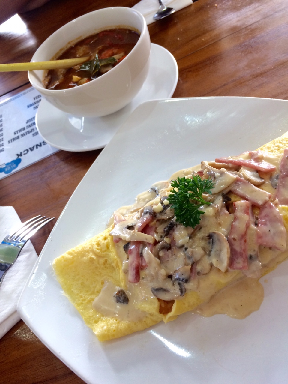 오토바이를 타고 정처없이 사누르 해안지대를 돌다가 배고파 들어간 블루카페입니다.
