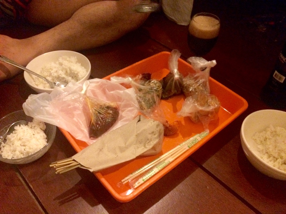 저녁은 집에서 먹기로 하고 사떼(꼬치)랑 반찬사들고 집에 가는데 노점상들이 장사를 시작했습니다