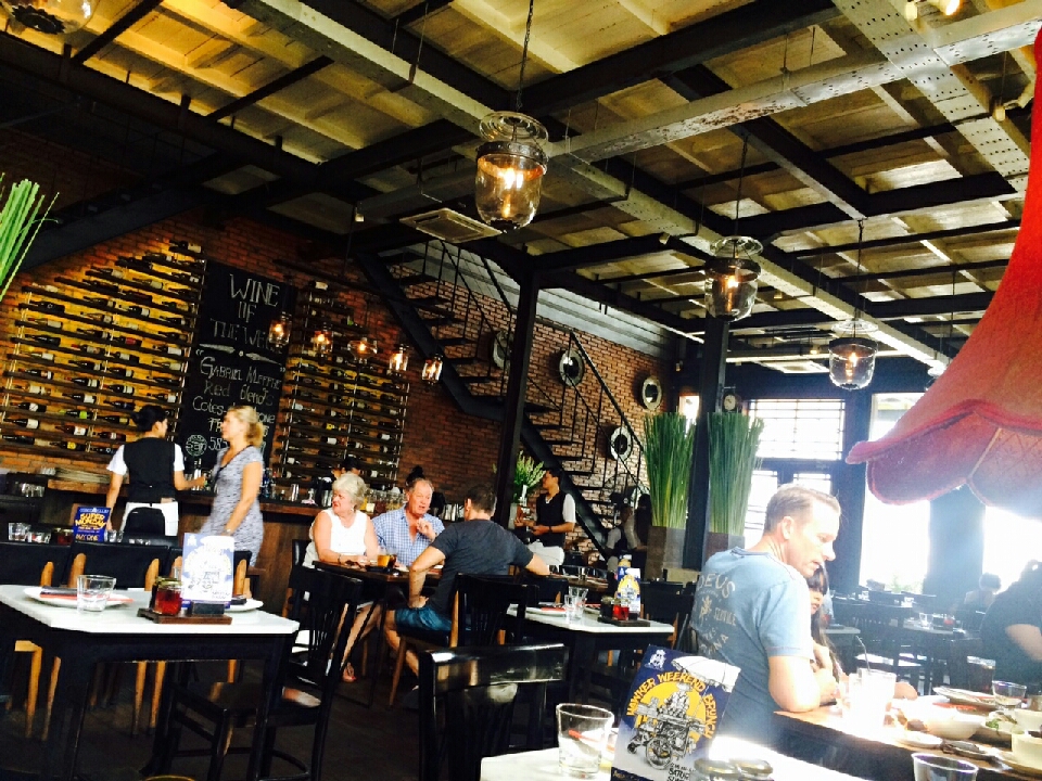 스미냑의 유명한 식당 중 하나인 마마산(mamasan)으로 점심을 먹으러 갔습니다. 내부가 탁 트인 빈티지 인테리어와 마마산의 대표이미지인 대형벽화가 특색있는 식당입니다.