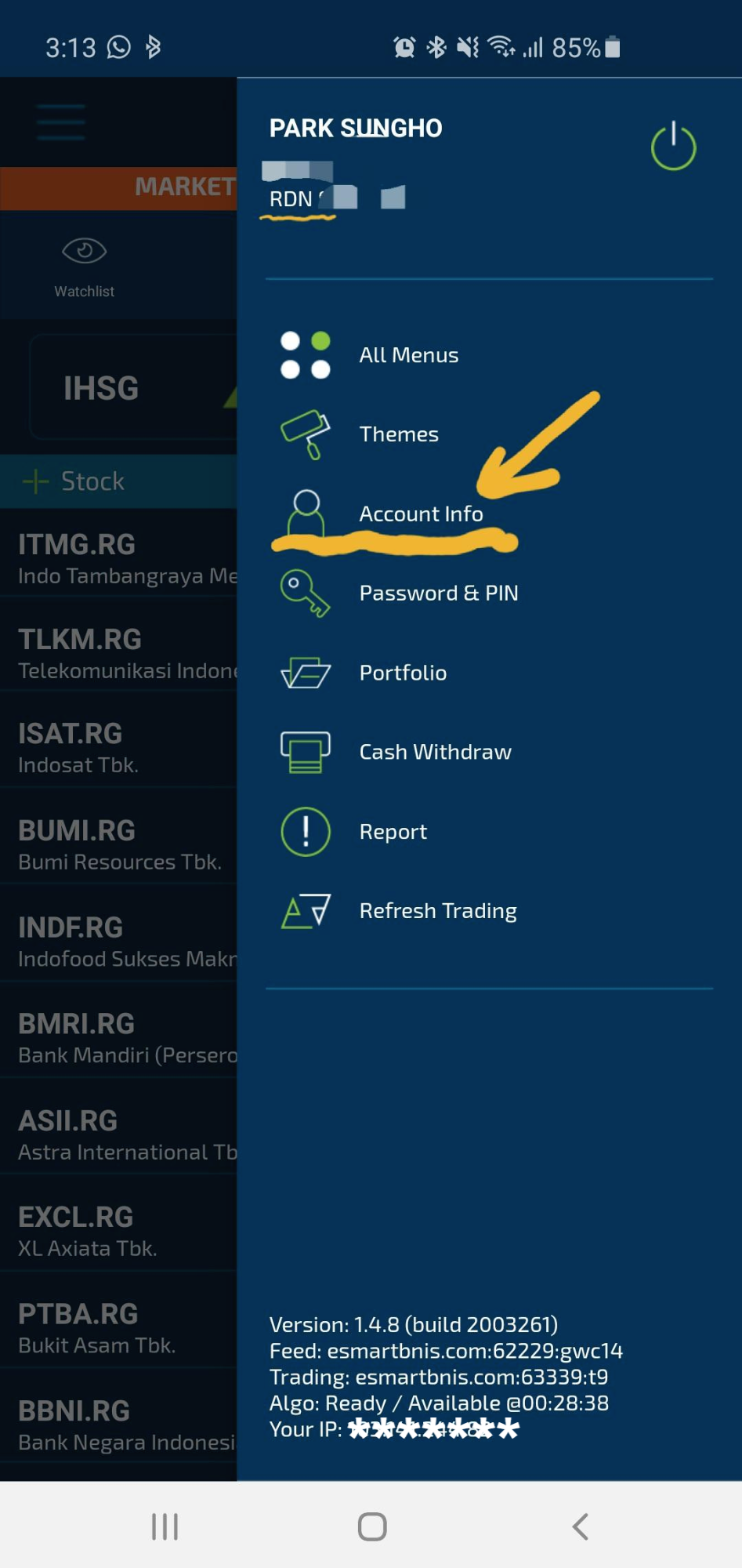 2> RDN(Rekening Dana Nasabah) : 고객계좌번호를 확인!(상세내용은 Account Info에서도 확인 가능)