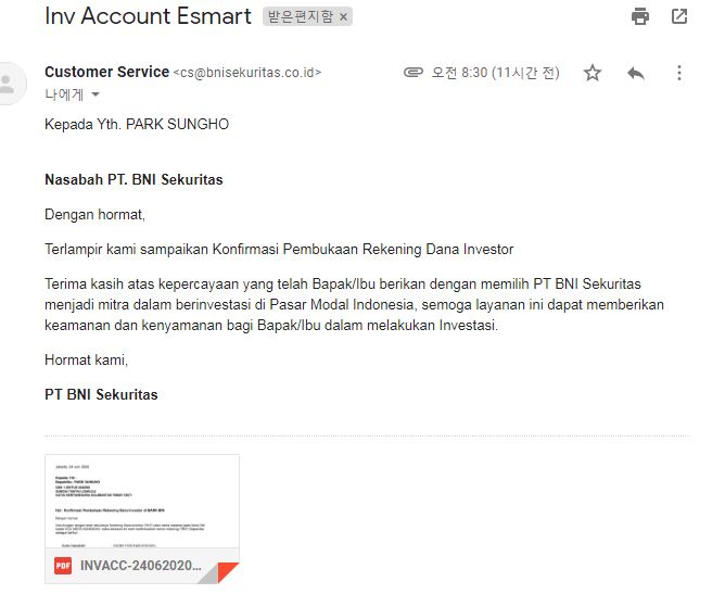 1. BNI 주식계좌 개설 확인 메일 받음_6월 24일(수)