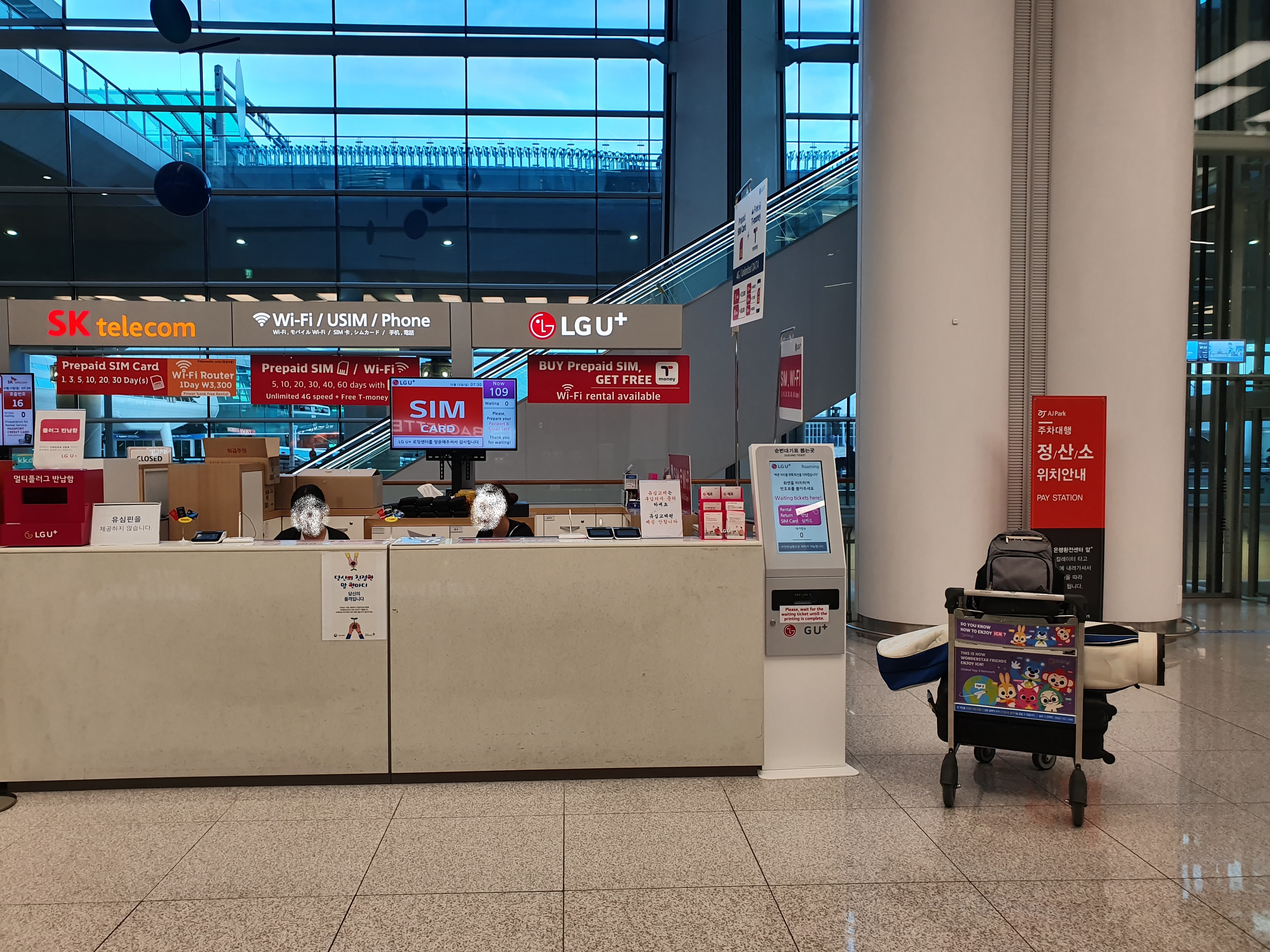 결론부터 이야기하자면! 인천공항에서 한국핸드폰 유심칩 구매하여 개통가능하나 "직영점 업무가 종료된 시간"에만 가능하다!!