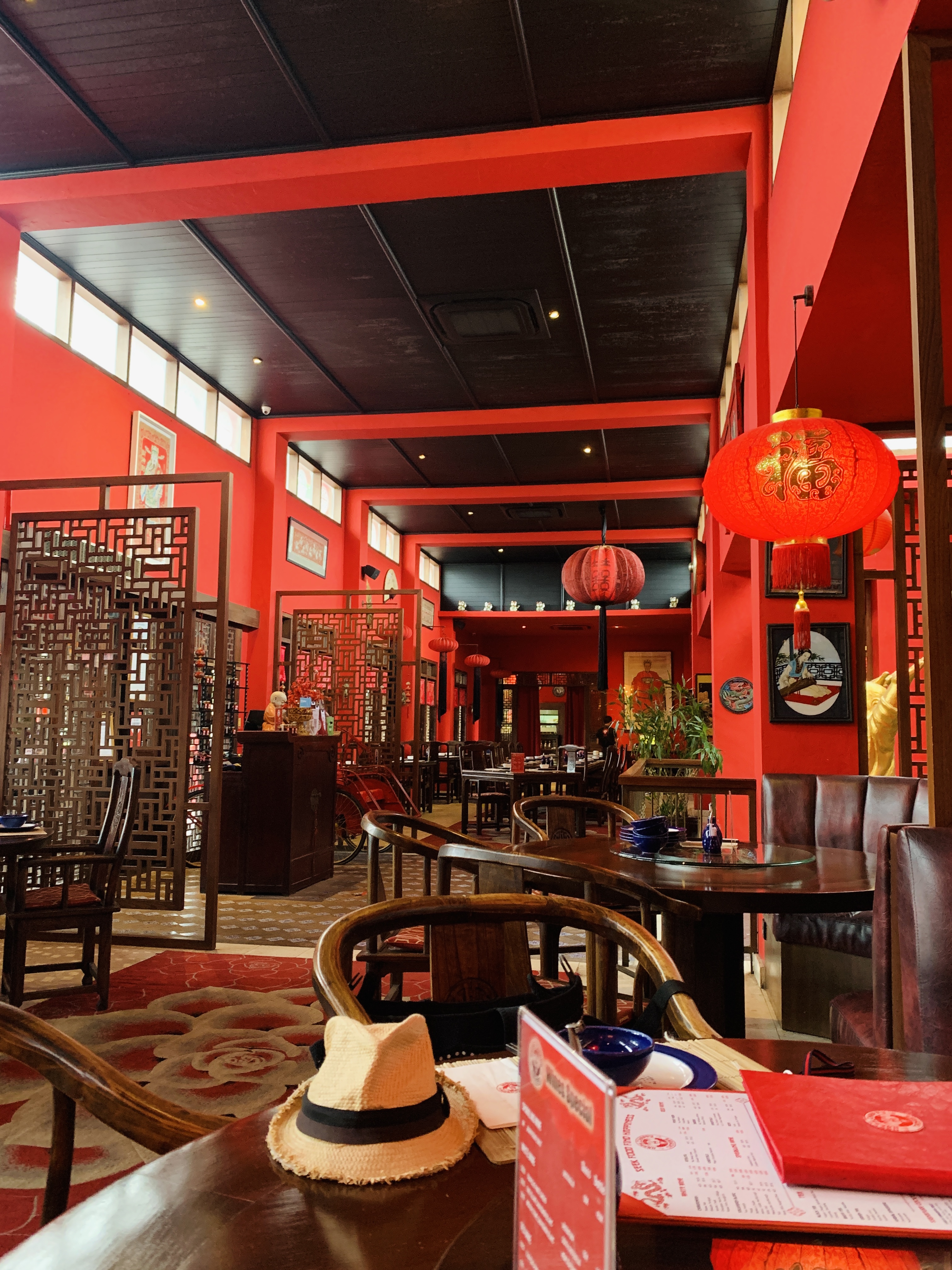 규모가 상당히 크고요 3개의 홀로 나뉘며 연회홀-식당-바 구성입니다. 인테리어가 온통 시뻘겁니다.